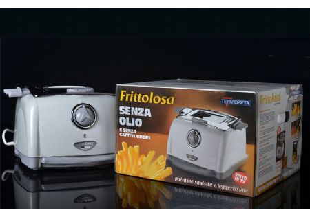 Le caratteristiche tecniche di "Frittolosa", comprendono una potenza di 1400W, un timer con segnale acustico dotato di dispositivo di sicurezza in caso di surriscaldamento, ha una portata massima di 700 gr. I tempi di cottura si differenziano a seconda dell’alimento e del peso, per esempio 700 gr di patatine a bastoncino impiegano 25 minuti per cuocere, un fritto misto di pesce pastellato di 300 gr circa, impiega 20 minuti e 500 gr di castagne, 30 minuti. Allegato alla confezione č presente un dettagliato ricettario che espone in modo semplice ed esauriente ricette e tipi di cottura.